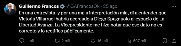 Tal fue el impacto, que el mismísimo Jefe de Gabinete de Ministros tuvo que salir a desacreditar al tuitero, al mismo tiempo que la Secretaria General de la Presidencia, Karina Milei, llamaba por teléfono al Senador para disculparse y dejarle en claro que esa no era su forma de pensar, ni la del Presidente de la Nación. Lo peor del agravio, es que además de contener información falsa, otros incoherentes como Florencia Arieto, salieron a defender lo indefendible, buscando todo tipo de excusas para justificar lo injustificable.